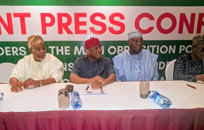 Top opposition leaders on Tuesday converged on the Transcorp Hilton Hotel in Abuja to publicly challenge key provisions of the newly amended Electoral Act, raising concerns about its impact on Nigeria’s democracy and future elections.