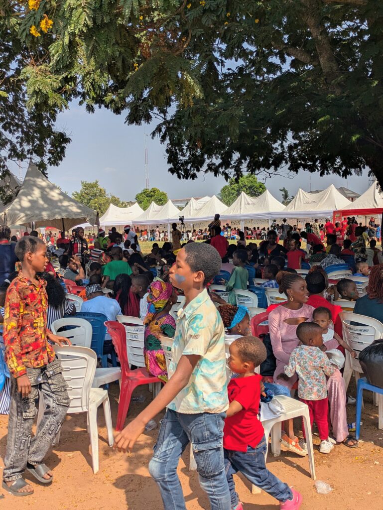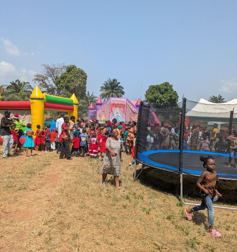 The event featured a display and auction of items, as well as a funfair that included Santa Claus (Father Christmas), a bouncing castle, Mickey Mouse mascots, Christmas carols, praises, and other exciting activities that created a joyful atmosphere for the children.