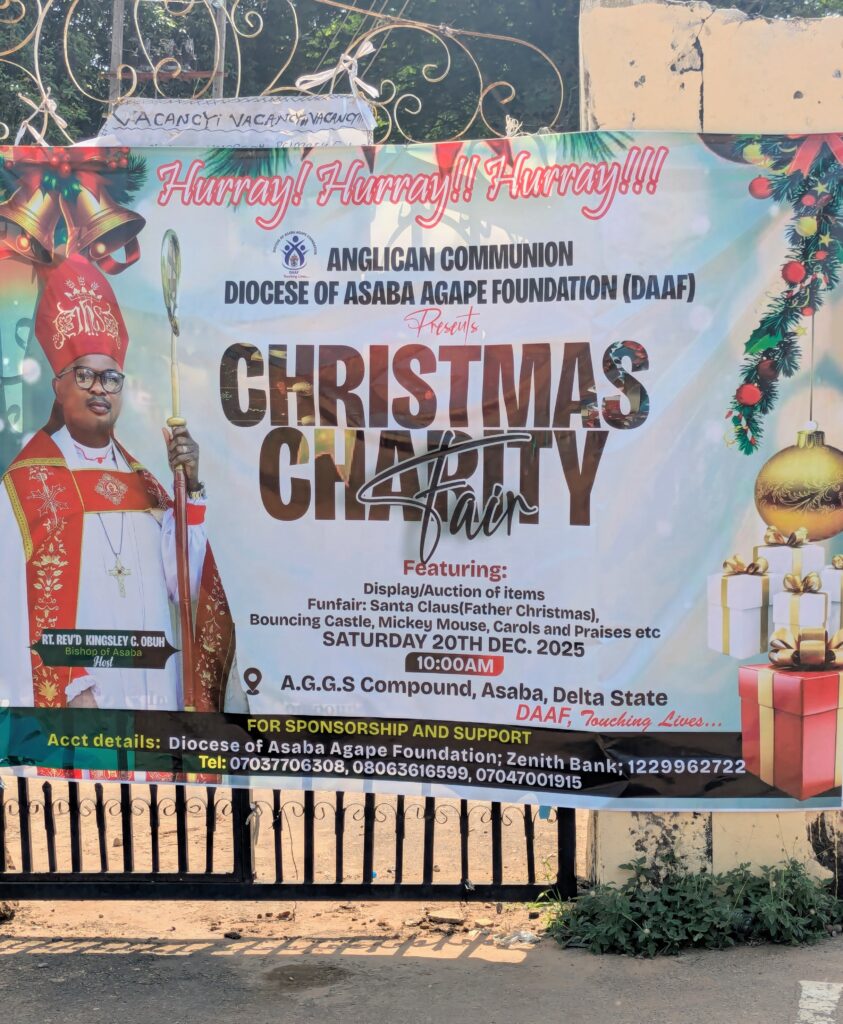 The Diocese of Asaba Agape Foundation (DAAF) on Saturday, December 20, 2025, hosted a Christmas Charity event for children and less privileged persons in Asaba, Delta State, with the Bishop of Asaba, Rt. Rev’d Kingsley C. Obuh, serving as the Chief Host.