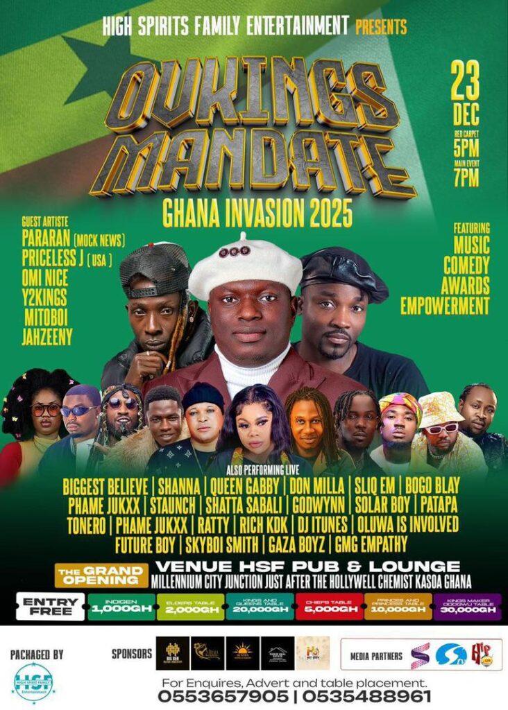 The event is expected to attract a wide audience. It will feature live performances from top entertainers, including OVKINGS of Lagos, Patapaa, Pararan Mock New, Omi Nice, and several other celebrity performers. Organisers say the night will deliver a rich blend of comedy, music, and celebration.