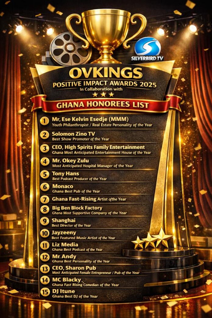Kasoa, Ghana — The organisers of the OVKINGS Positive Impact Awards 2025 have officially announced the list of honourees from Ghana, in collaboration with Silverbird Television.