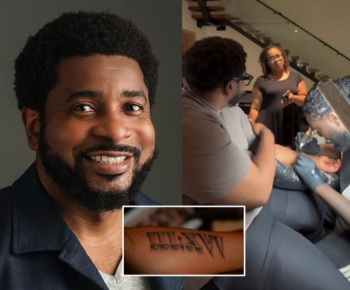 Popular relationship coach and founder of the David Christian Centre, Pastor Kingsley Okonkwo, has stirred widespread debate on social media after unveiling a tattoo inspired by a Bible verse to mark his 50th birthday.