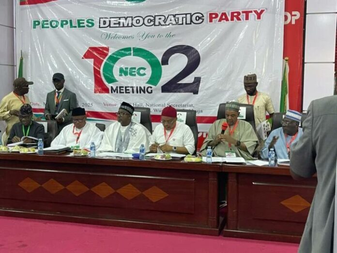 The NEC also used the meeting to accuse the APC of manipulating recent bye-elections in states like Kaduna, Taraba, and Zamfara. The PDP condemned what it called the “militarisation of elections”, saying excessive use of security forces in polls is a threat to democracy.